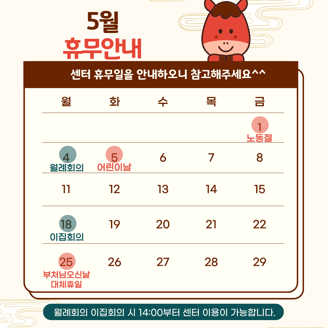 [2026년 5월] 서울근로자건강센터 이용제한 안내   | 관리자 | 2026-04-27 | 13 |