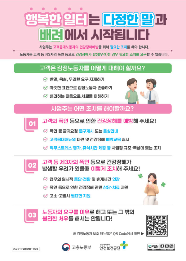 [리플렛] 행복한 일터는 다정한 말과 배려에서 시작됩니다페이지정보 작성자 관리자 날짜25-10-28 14:28 조회수155 댓글0목록본문 안녕하세요 근로자건강센터입니다. 모두에게 건강한 일터가 될 수 있도록 서로를 배려하는 사회가 되었으면 합니다^^ 댓글목록등록된 댓글이 없습니다.목록