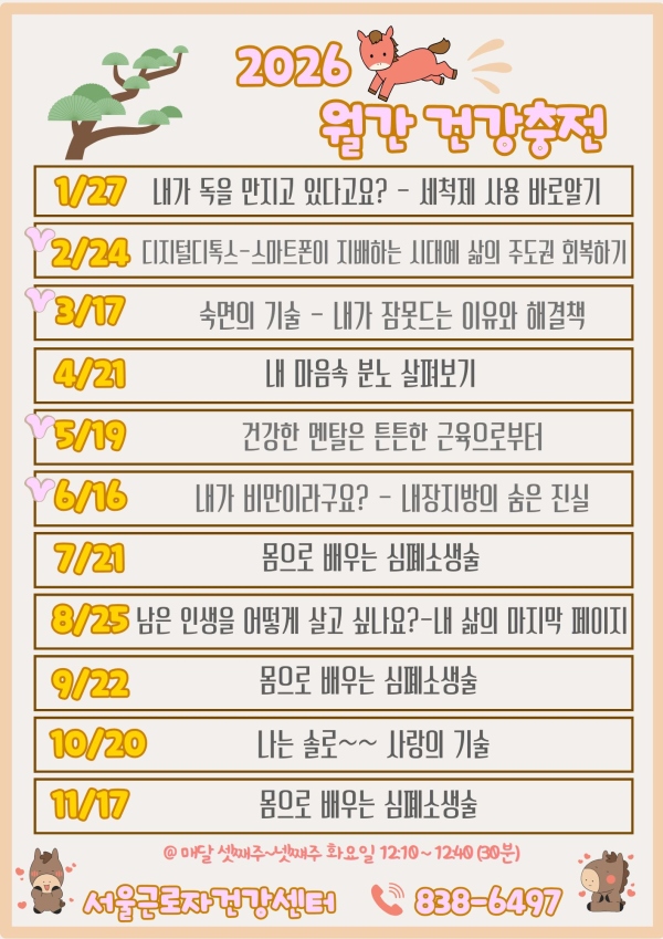 2026년 [센터] 월간 건강충전 프로그램 안내